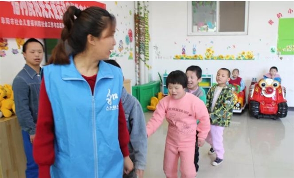 2018年4月19日,“三区计划”项目社工为阜阳市社会儿童福利院的孩子们开展了第五节阳光天使运动康复教育支持小组活动,这也是本次运动康复教育支持小组的最后一次活动。孤残儿童运动康复教育支持小组为组员创造了一个面对面的密切沟通的环境,组员们在这样一个环境中认识自我与他人,激发了组员们的运动能力。
