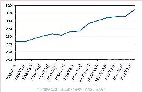全国商品混凝土市场均价走势(C30,元/方)